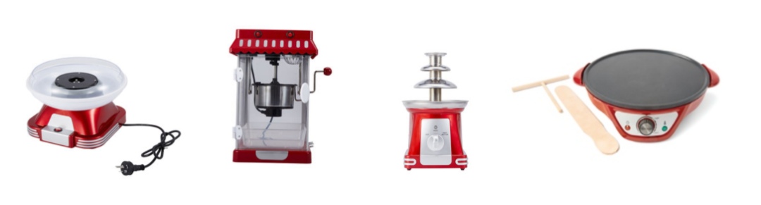 比如最近风很大的棉花糖机、爆米花机、巧克力瀑布机以及煎饼机,“童年味道”四件套,深得消费者心!