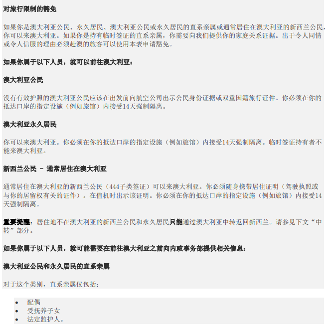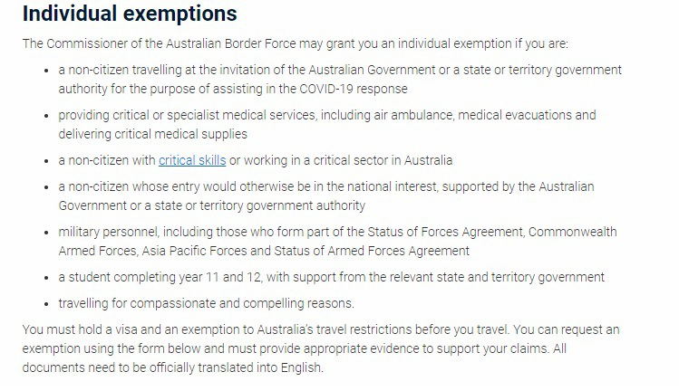 除非旅客为澳洲公民、PR及其直系亲属,以及居住在澳洲的新西兰公民,不然任何人想要入境,就只能通过申请入境豁免,并且得到批准。