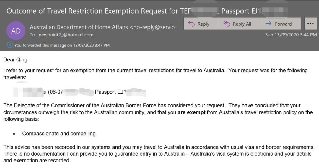 除了正常的商业方面的入境豁免以外,新起点团队还在最近成功申请到了“compelling and compassionate reason”的豁免入境资格。