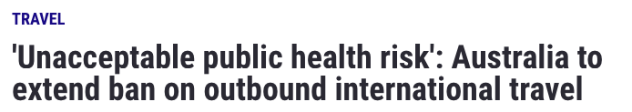 根据媒体报道,原应在12月17日结束的澳洲国际旅行禁令再度被延长了3个月。