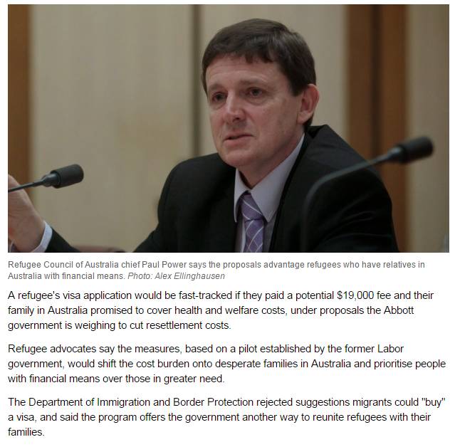 在2013年政府曾经尝试过一个难民特别签证计划,一个难民家庭,主申请人缴纳$19,124,第二名申请人缴纳$2680,或者一个无人以上的家庭缴纳上限3万澳元,就可以快速获得签证,定居在澳洲。到今年3月份为止,政府在这一签证类别上,共收到200万澳元的签证费。