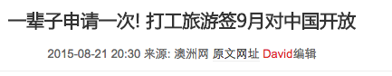 澳洲驻华使馆申明,打工度假签证将为来自中国的参与者提供独特的,一生只有一次的机会!