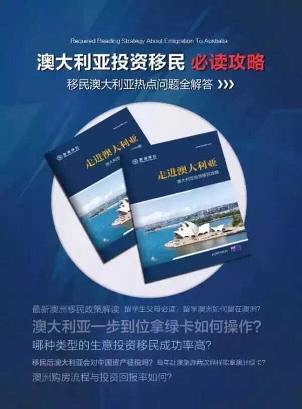 这里收集了近100个问题,这些问题来自于意向移民澳洲或已经移民澳洲的人士,由国内专业权威机构给予解答。这本移民攻略覆盖澳大利亚移民政策、各级教育、房产投资、社会福利、税务知识、生活社交等方方面面,囊括了移民评估、资金准备、移民决策到后续登陆、生意投资、绿卡延续移澳全程,关于澳洲移民,您想知道的,都在这里!