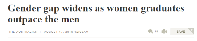 在澳毕业生的性别差距越来越大:10年前的差值比率为16.2%,但如今这个数字已上升到20%!