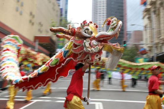 (在悉尼唐人街外舞狮的中国人,图片来源:网络)