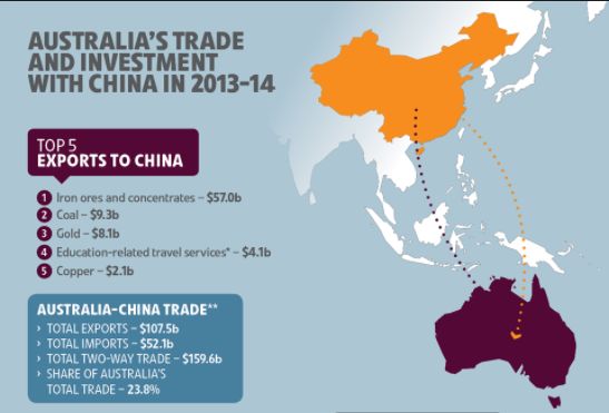 (一项数据显示,仅在2013-14年,中国与澳洲之间的双边贸易总和已经达1596亿美元)