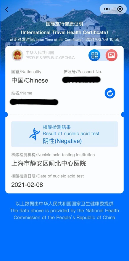 健康证明内含加密二维码,以供各国相关部门验真并读取个人相关信息。