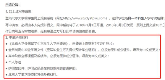 而北大更是言简意赅:高中成绩单,学历证明件及个人陈述。