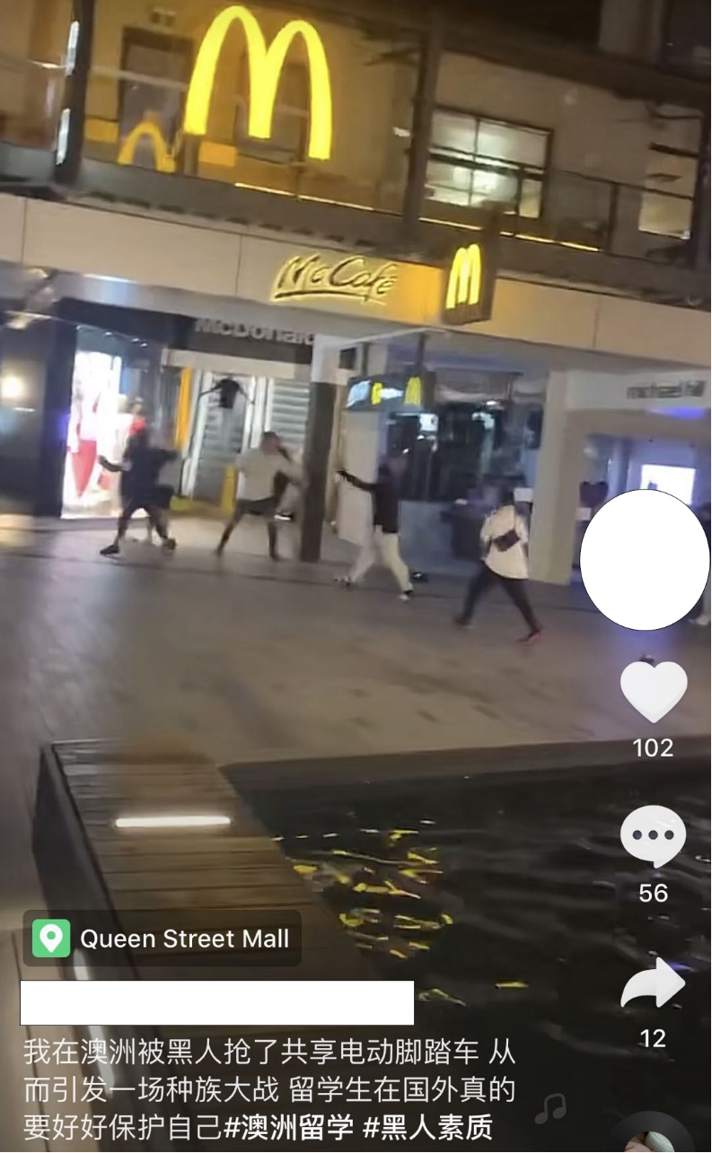 澳市中心大型互殴,中国留学生电动车被黑人抢,澳人帮追回打起来