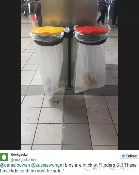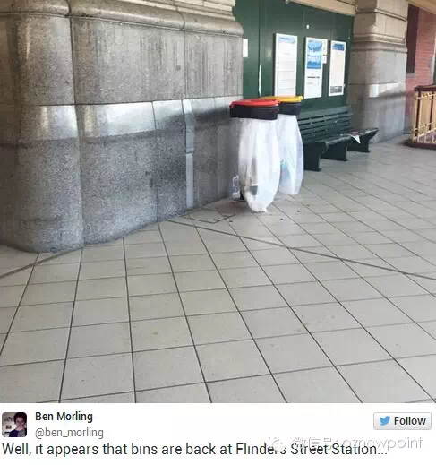 从本周起,维州公共交通管理局开始在墨尔本各个火车站内重新安装垃圾桶。这批新的垃圾桶借鉴了伦敦的经验,只是将塑料袋挂在了金属框上。