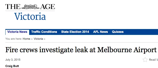 澳洲《时代》报纸报道,周四晚上,墨尔本飞机场,一架澳航飞机发现危险化学品泄漏,导致航班被取消。
