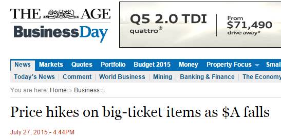 澳币下跌,大屏彩电进口电子产品先涨价30%
