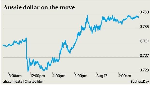 经过两天人民币的下跌,澳元竟在一夜之间反弹超过2%!今晨,澳元的价值为73.8美分,与昨日的72.15美分相比大幅提高。