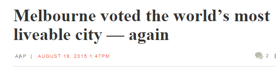 对于住在墨尔本的人来说,当墨尔本连续5年被评为“全世界最宜居”城市之时,应该是丝毫不会感到惊讶的。