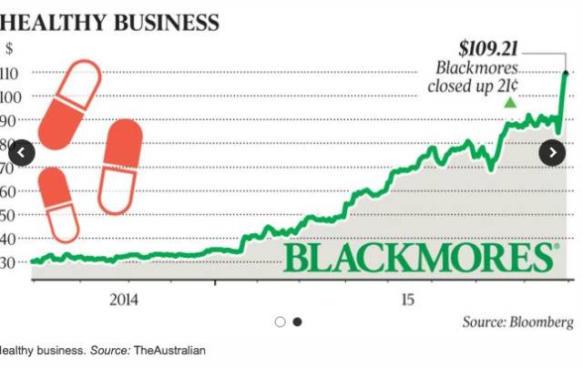 引领这个市场的澳佳宝(Blackmores)股价已经突破100元,周四还收于110元,比深受市场喜爱的联邦银行和CSL的股价还高。
