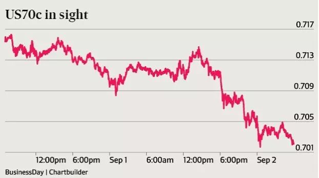 中国制造业的动荡引发了澳币汇率的新一轮重挫。在过去的24小时内,澳元在70.16美分至71.56美分之间上下波动。而最低点则是澳元自2009年以来的又一新低。
