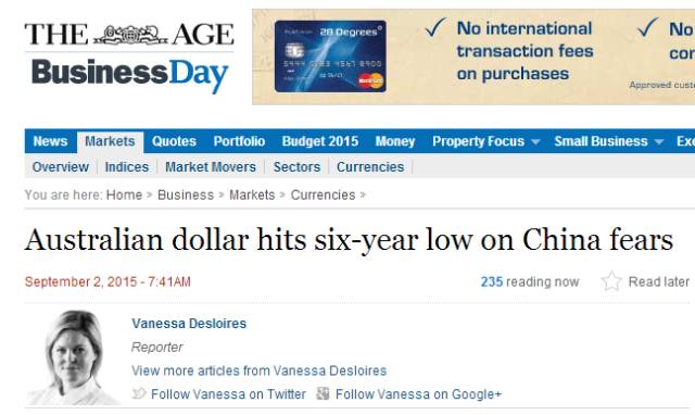 然而更糟糕的是,德意志银行分析人士、首席经济学家博伊顿(Adam Boyton)表示,对于中国经济的担忧和对于大宗商品价格的影响,可能会将澳元汇率进一步压低至60美分以下,达到12年以来的最低点。
