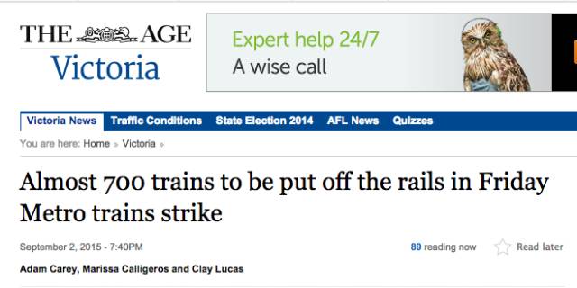 罢工罢工又罢工,墨尔本怎么总是有罢工!之前是电车罢工,电车好不容易消停一些了,现在又来了个火车大!罢!工!