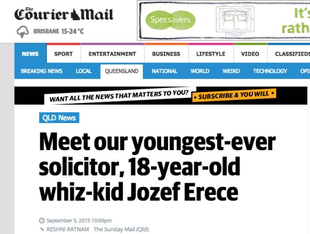 据《信使邮报》报道,亚裔少年才俊约瑟夫(Jozef Erece)将以南半球最年轻的出庭律师的身份走进布里斯班高等法院!