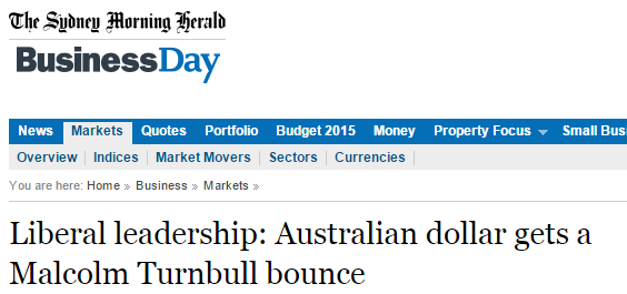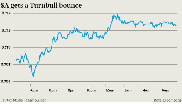 投资者似乎对糖宝(Malcolm Turnbull)取代艾伯特担任总理这个消息感到兴奋,澳元离岸交易价达到71.56美分。