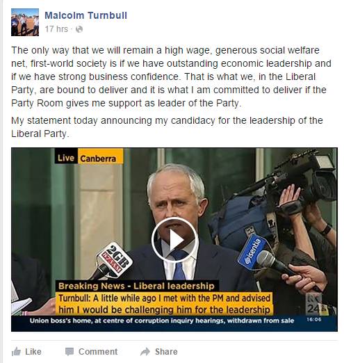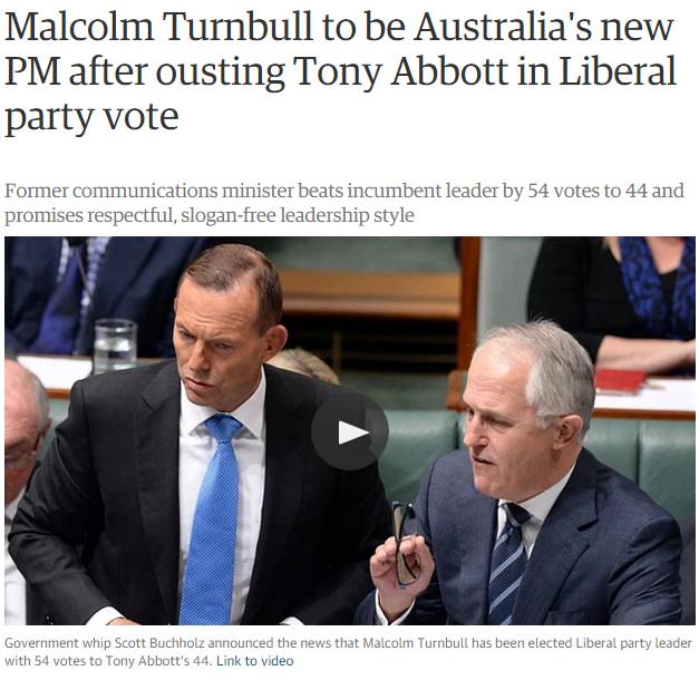 7个小时前Malcolm Turnbull糖宝挑战了Tony Abbott艾伯特,扬言要竞选成为新的总理。