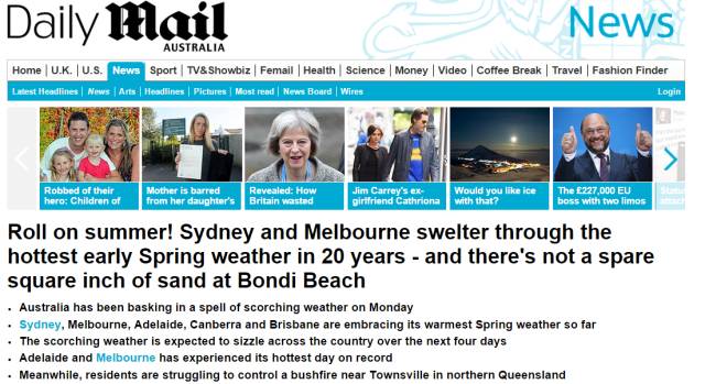这一数据仅比1942年的10月份最高温度记录低了0.4度。气象学家Anthony Cornelius表示,由于悉尼地处Blue Mountains山脚下,使得这里的气温比新州西北部那些日照充足的城市更高。