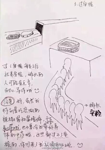 在这份“攻略”里写明了出发前要准备的东西,过安检的时候注意的事项以及有问题时如何寻求帮助等等,重要的地方还用下划线着重标注。有个如此细心孝顺的女儿,老两口也会很温暖吧。