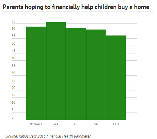 RaboDirect2015年财务健康的晴雨表显示,在2500人参与的调查中,有61%有孩子的澳洲人想要在财务上帮助孩子,让他们买得起房。