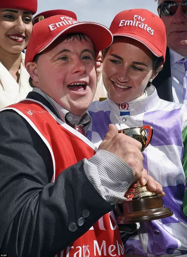 而患有唐氏综合症的哥哥也获得了属于自己的奖项Tommy Woodcock Cup汤米·伍德科克奖,以传奇赛马选手Phar Lap的马童命名的奖项。