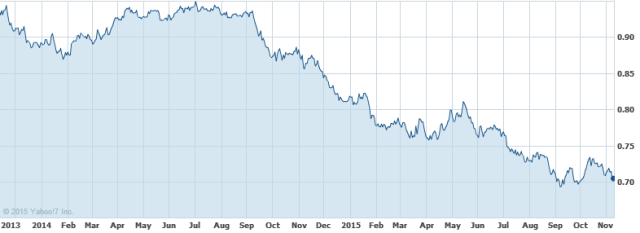 犹豫不决的美联储做着白日梦,试图把利率调整到正常水平,这似乎也预示着在接下来的12月和2016年,全球经济或将面临动荡不安的局面。为了维持澳洲经济的平衡发展,澳币与美元的兑换价格或将下跌至50美分。