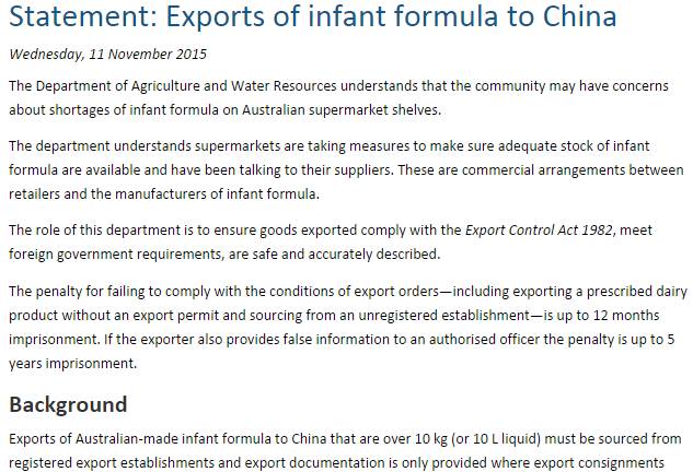 屯奶大户和小代购们都慌了,然而其实澳洲政府并没有要赶尽杀绝,事实上申请出口奶粉,还是可以实现的。首先需要递交一份出口奶粉的申请给相关部门,相关信息可以在EXDOC政府系统中查询,从此无论是代买还是代购奶粉出口中国,都需要走上正规合法之路。