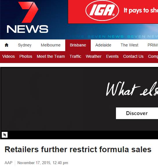 据7号台新闻昨日持续报道,物以稀为贵,澳洲奶粉一度被炒到原价7倍之多,原本25到30澳币的一罐奶粉在最紧缺时可以卖到150到190澳币,简直是疯狂地让人无法接受,澳洲人买不到奶粉叫苦连连,最终引起公愤,澳洲政府出面管制,相应媒体和民众诉求,中国人不要再抢我们孩子的口粮了!