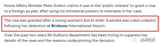 报道中称,2015年年中左右,达顿给了一个原本在布里斯班国际机场因为“签证不符合目的”而被拒绝入境的年轻女人特赦,准许她持600访客签证入境!