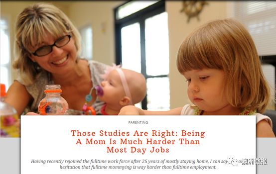 很多人以为做全职家庭主妇/爸爸是件很轻松的事,其实不然:根据一家名叫Welch的调查机构结果表明,家庭主妇每天需要从6点半起床,晚上八点半才能“下班”,工作量比全职职工还要累2.5倍。
