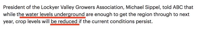 当降雨量减少,当地的水坝逐渐干涸,这使得Lockyer Valley的农民们不得不依靠着地下水生活生产。