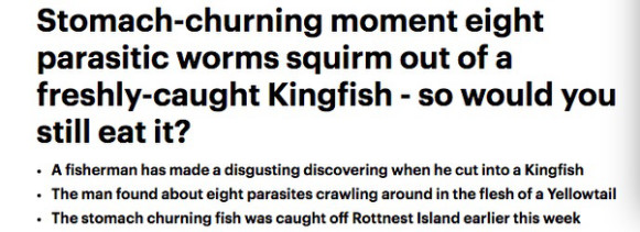 最近几年,在当地捕捞上来的鱼和海鲜,里面经常能发现蛔虫、线虫!