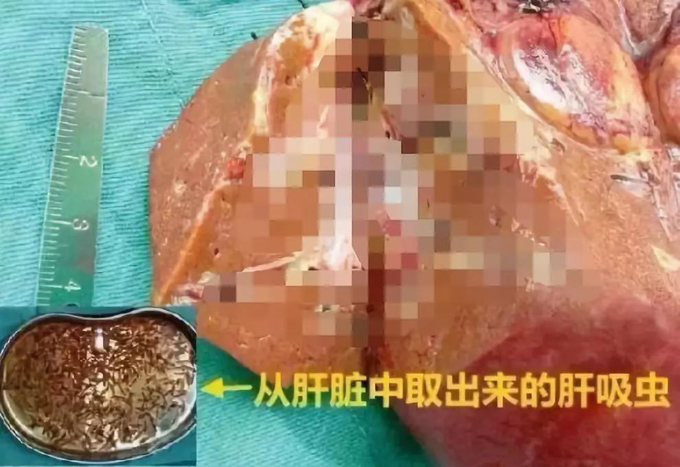 到医院检查以后发现自己的肝脏几乎都被虫子啃食干净了!