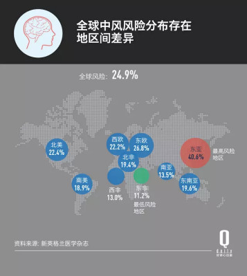 而东亚地区的中风风险却远高于这个平均水平——高达40.6%,