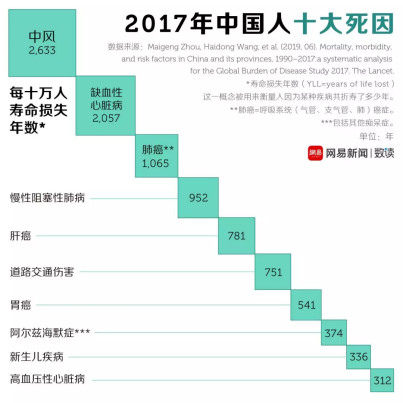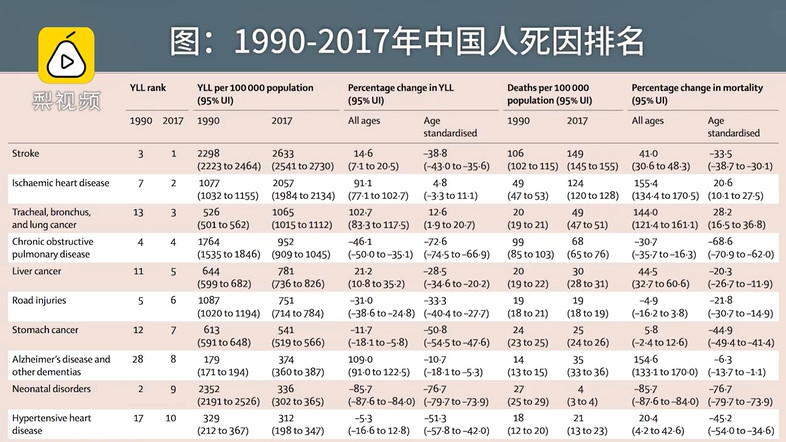 这项研究分析了1990年至2017年中国疾病的发病率及死亡原因,统计结果令人意外: