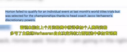 事发后,不仅舆论声讨了霍顿,澳媒《Daily Mail》还爆出了霍顿参赛“走后门”的丑闻: