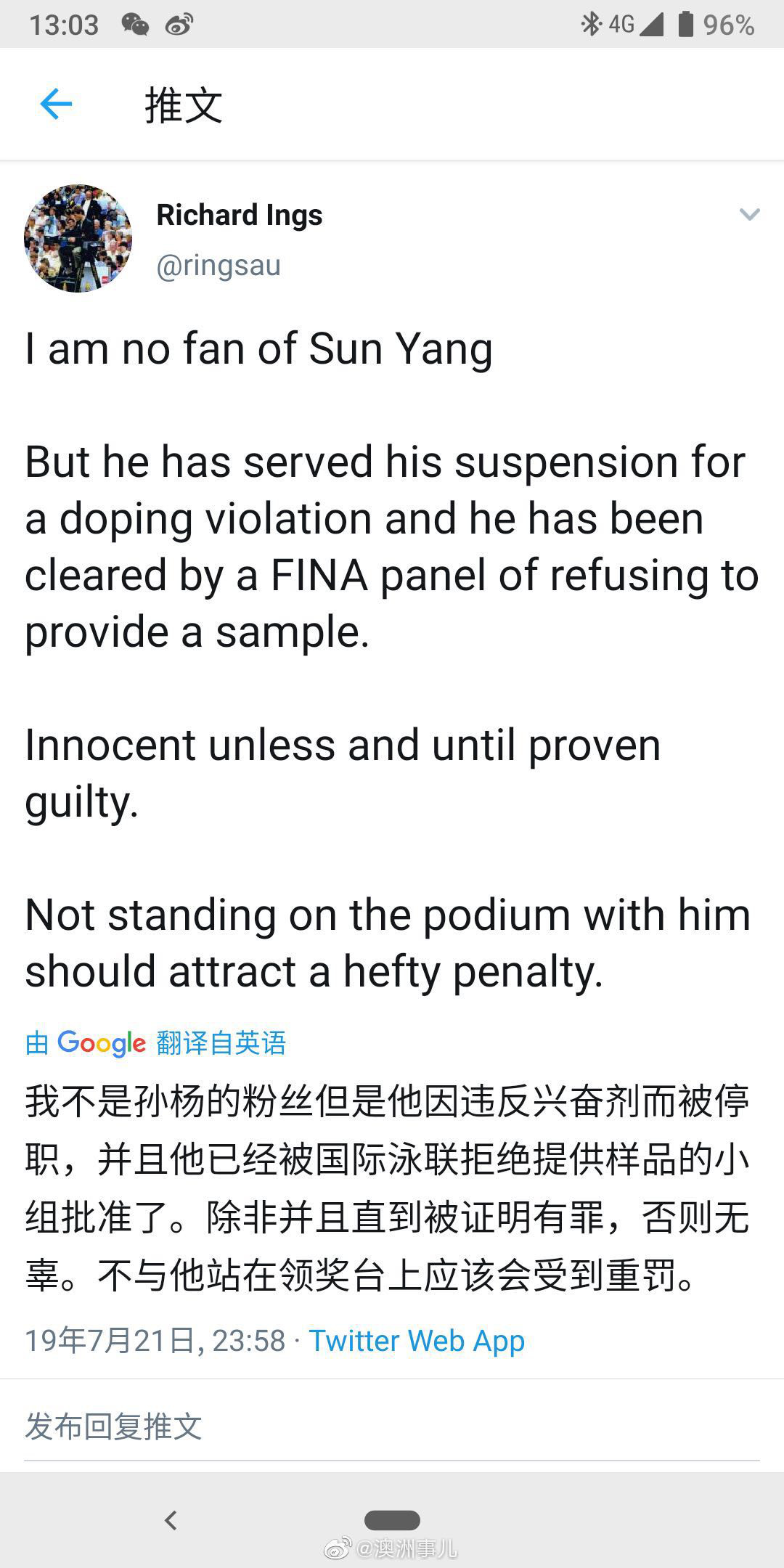 前澳大利亚反兴奋剂委员会的主席直接在社交媒体上发文称: