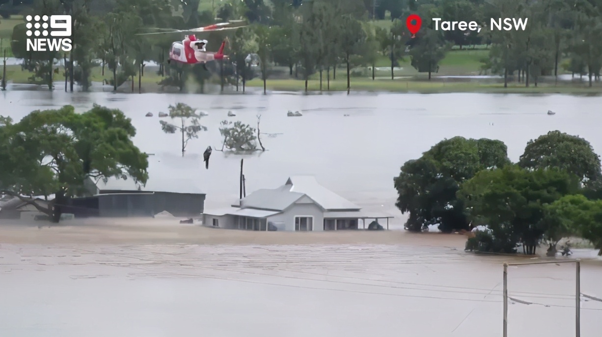 在截至周六下午的24小时内,Macquarie港的部分地区的降雨量达到了400毫米,附近的几个城镇都被洪水淹没了。Taree以南的的地方,洪水的程度堪比92年前最严重的一次。